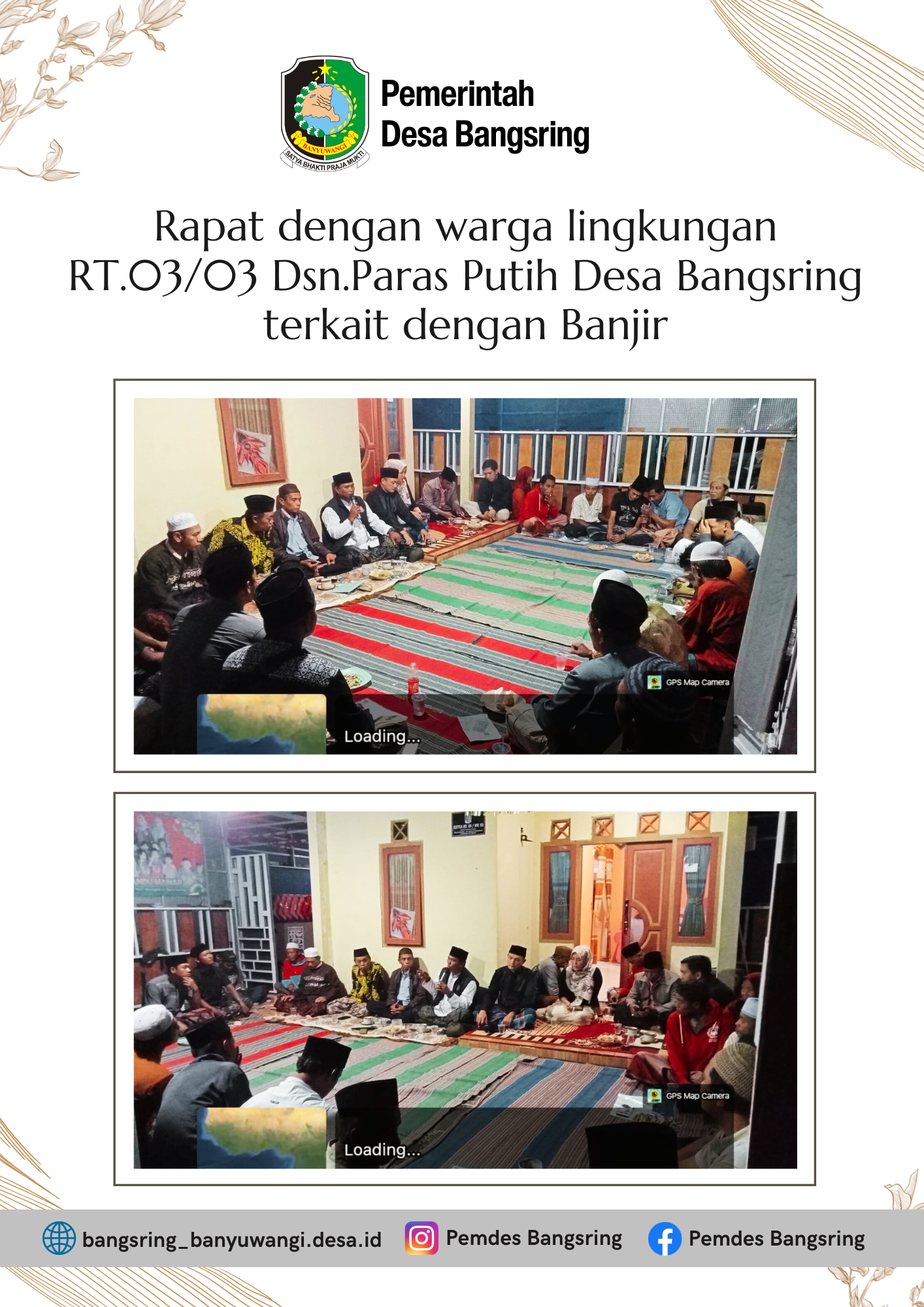 Pertemuan dengan warga digelar pada Rabu malam, 25 Februari 2026, pukul 20.00 WIB, bertempat di rumah Ketua RT 03, Bapak Isnaini, Dusun Paras Putih. Kegiatan ini menjadi forum dialog langsung antara pemerintah desa, pihak kecamatan, dan masyarakat guna membahas langkah penanganan banjir yang dinilai semakin mengkhawatirkan.